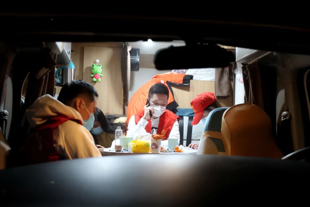 1月9日,河北石家庄,夜幕降临,志愿者依然在车内忙碌着。