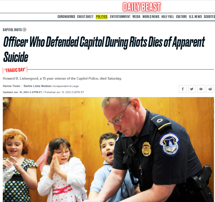 利本古德则是在冲击国会事件发生4天后于家中死亡,其具体死因尚不明确,但有媒体称他可能是死于自杀。
