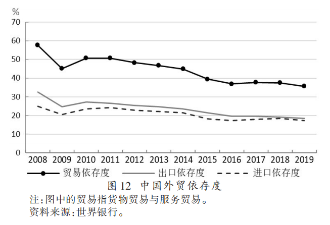 改革开放40多年来,我国要素禀赋结构的变化,集中在一些可变资源方面,如劳动力、资金和技术。然而,耕地、淡水和石油资源等自然禀赋无法改变,随着经济体量加大,这些资源相对短缺的问题更加突出。这就解释了为什么在2006年以后,中国的外贸依存度总体持续下降,但是石油、大豆等初级产品的进口却持续上升。