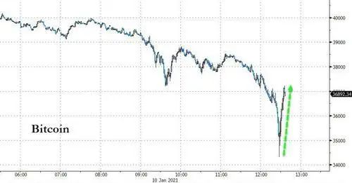 1月11日凌晨,比特币价格再度大跌逾12%,最低至33447美元,相当于一天之内狂跌了近6000美元。