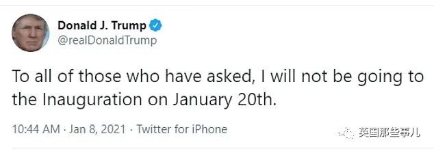 但一向不按套路出牌的川普,在推特账号被永久停用的前夕,已经明确表示过拒绝,他将不会出席拜登的就职典礼,